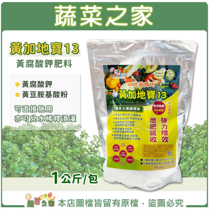 【蔬菜之家滿額免運】黃加地寶13黃腐酸鉀肥料 (1公斤裝)4-0-13.5黃腐酸鉀、黃豆胺基酸粉,可直接施用