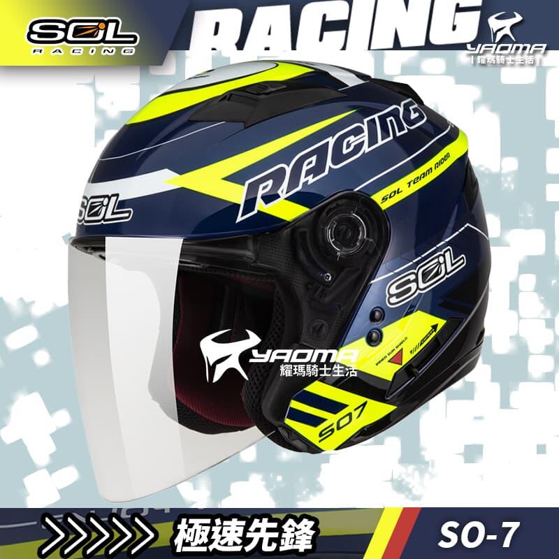 SOL安全帽 SO-7 SO7 極速先鋒 藍螢光黃 亮面 內鏡 LED燈 可加下巴 半罩 3/4罩 耀瑪騎士部品