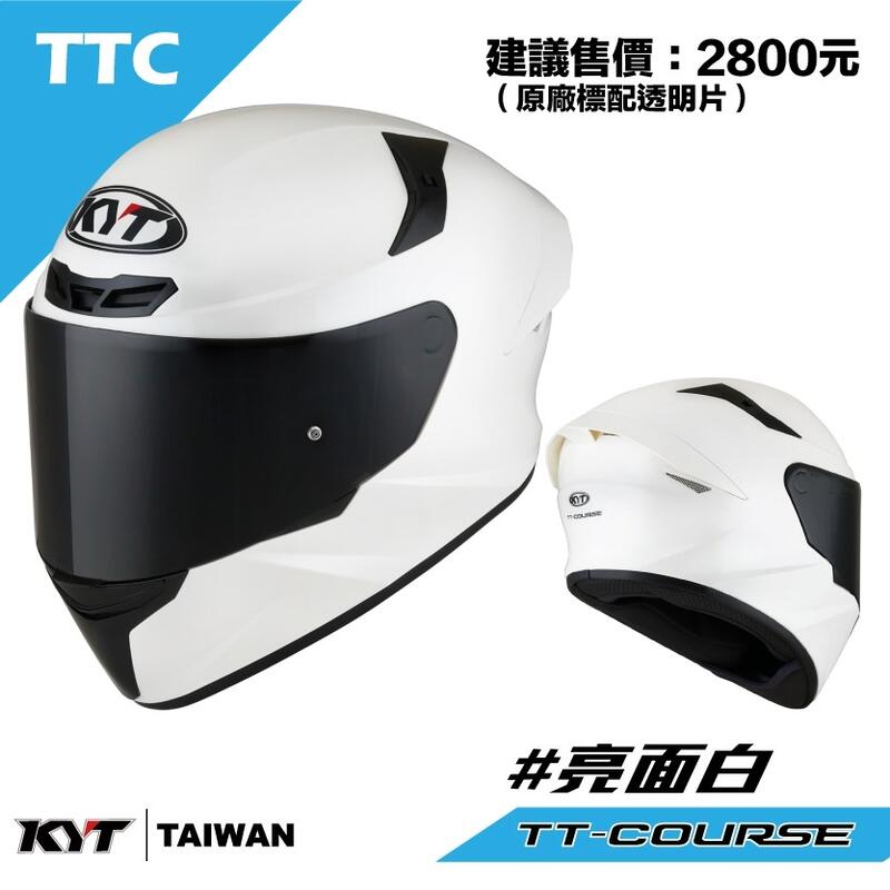 【JN騎士】KYT安全帽 TT-COURSE TTC 素色 白色 亮面 全罩式 入門款 眼鏡溝 單鏡片可加裝防霧片