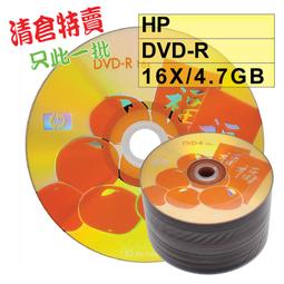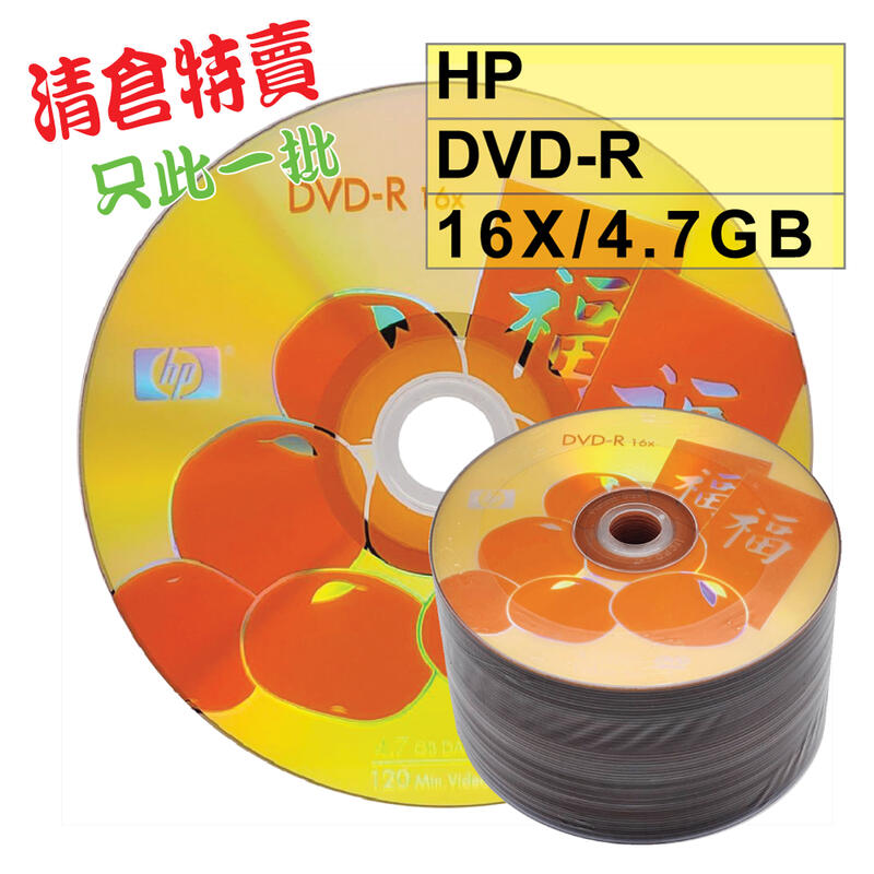 【清倉】50~100片-HP福氣黃金版面LOGO DVD-R 16X 4.7GB空白光碟片/燒錄片 (限量原廠特殊版面)