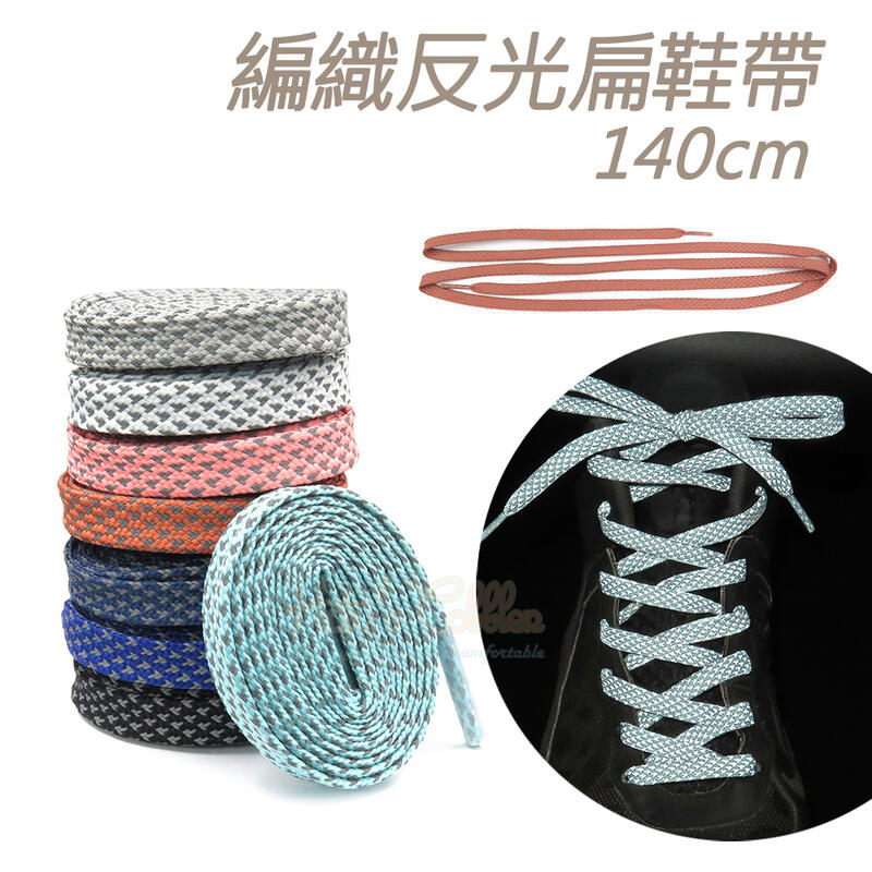 糊塗鞋匠 優質鞋材 G181 編織反光扁鞋帶140cm 1雙 反光鞋帶 發光鞋帶 夜間反光鞋帶