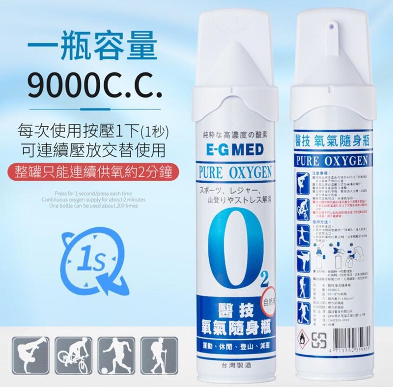 醫技 O2 純氧隨身瓶 氧氣罐 氧氣瓶 登山運動 (9000cc/罐 O2氧氣瓶 氧氣罐)