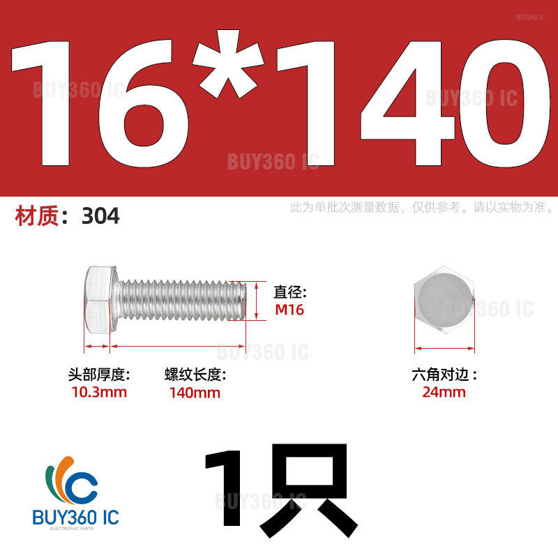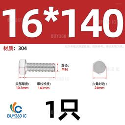 463274→191321^【M16*140-1只】304不銹鋼外六角螺絲加長螺栓螺釘螺杆M3M4M5M6M8M10M1