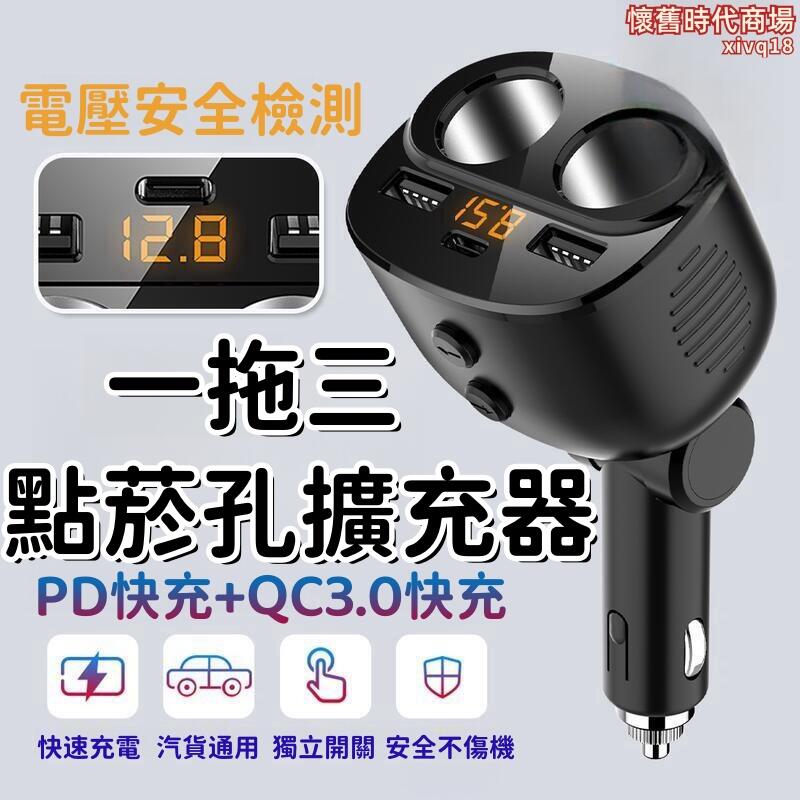 【台灣現貨】三孔車充 車用充電器 pd快充 type-c 點菸孔充電器 車充 雙點菸孔車充 汽車點煙器 車用擴充 點菸器