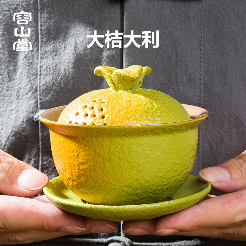 【小新茶具】容山堂橘子具三才蓋碗杯大容量陶瓷個人泡碗帶蓋功夫具