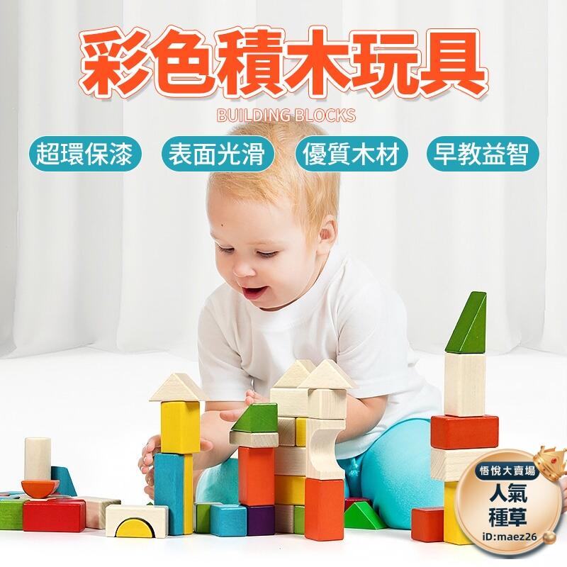 【彩色積木玩具】彩色積木 拼裝玩具 兒童積木 積木玩具 積木 玩具積木大顆粒積木 木製櫸木 兒童早教益智玩具
