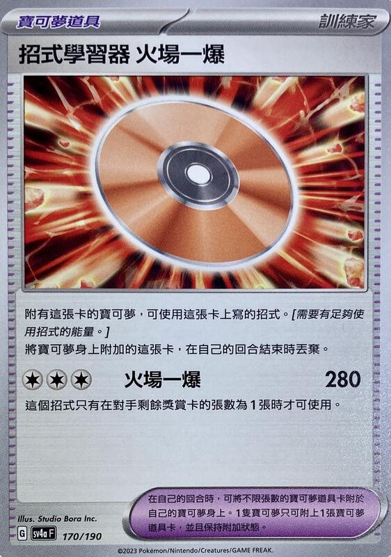 【桌上王國】寶可夢 中文 SV4a 170 招式學習器 火場一爆 PTCG