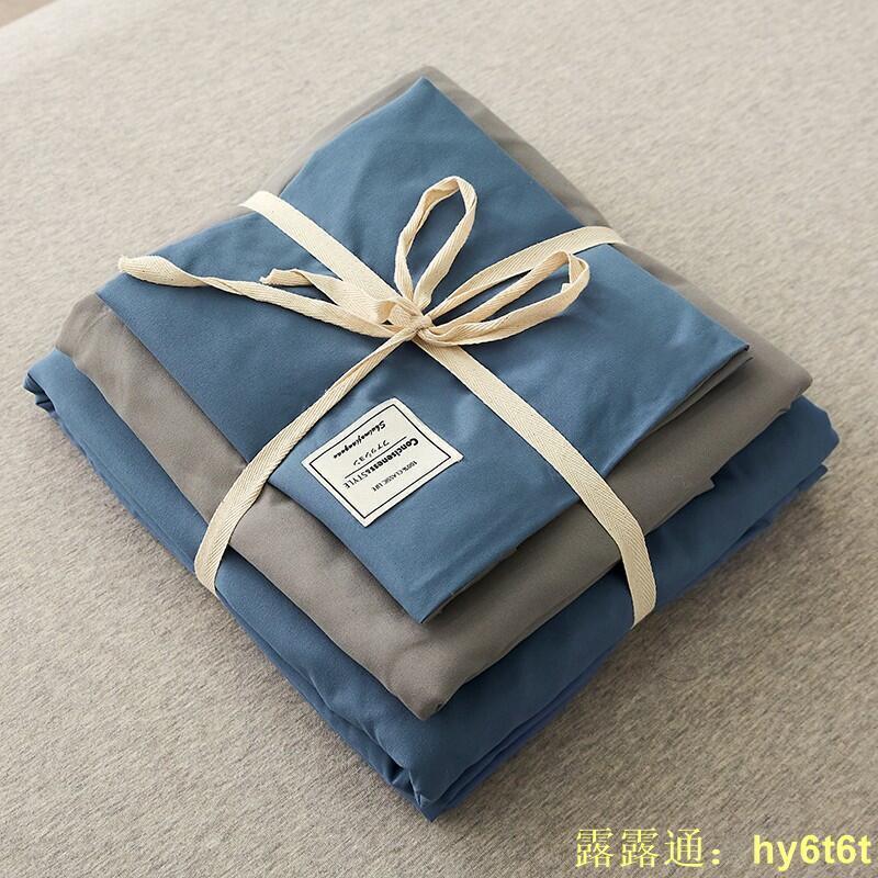 雙拼素色純色床包四件組 單人雙人加大雙人床包四件組 床包組被單組床單組薄款兩用被套枕套被單 寶藍淺灰