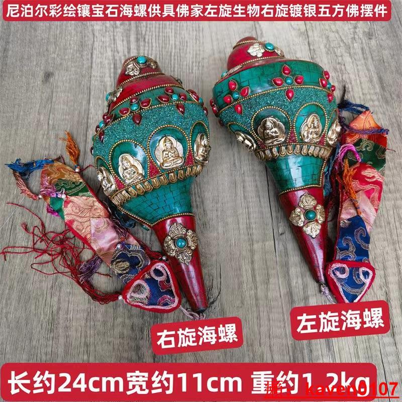 【小七嚴選】尼泊爾高檔五方佛海螺彩繪鑲寶石鈴螺號角可吹口響左右旋法螺大號