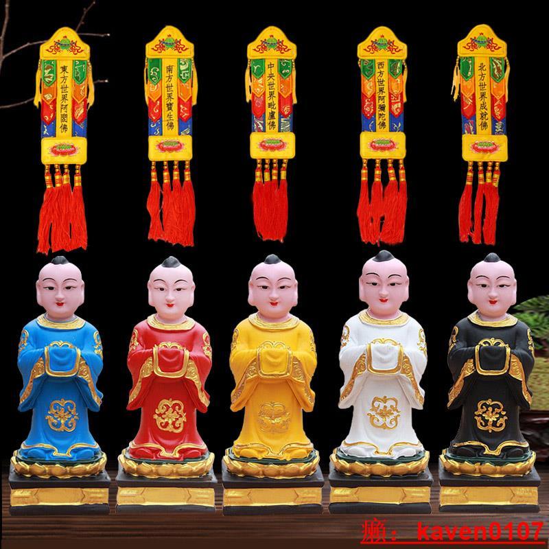 【小七嚴選】五方童子佛像擺件五天尊五方靈童帶佛幡童子幡焰口神像20cm五方佛