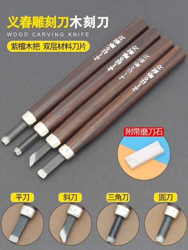 日本進口義春刃物木刻刀7件套裝紫檀木把版畫木工雕刻刀送磨刀石