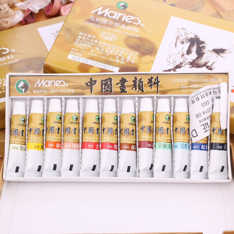 上海馬利中國畫顏料12色18色24色套裝國畫顏料山水宣紙顏料12ml