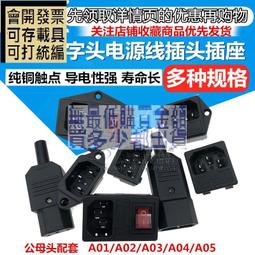 AC電源座子品字插頭插座三芯電源線插頭公頭母頭充電延長線純銅腳