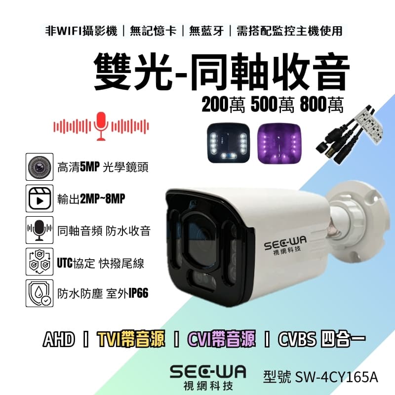 雙光攝影機 全彩 紅外 監視器 同軸收音 1080P 500萬 防水 監視鏡頭 監控鏡頭