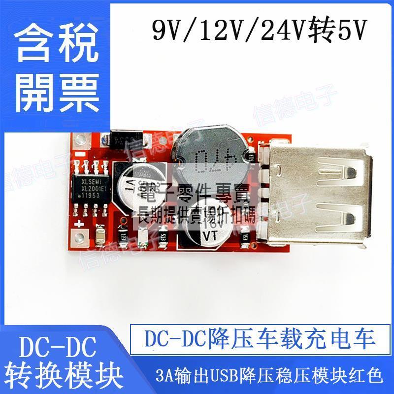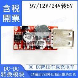 9V/12V/24V轉5VDC-DC降壓車載充電車充3A輸出USB降壓穩壓模塊紅色