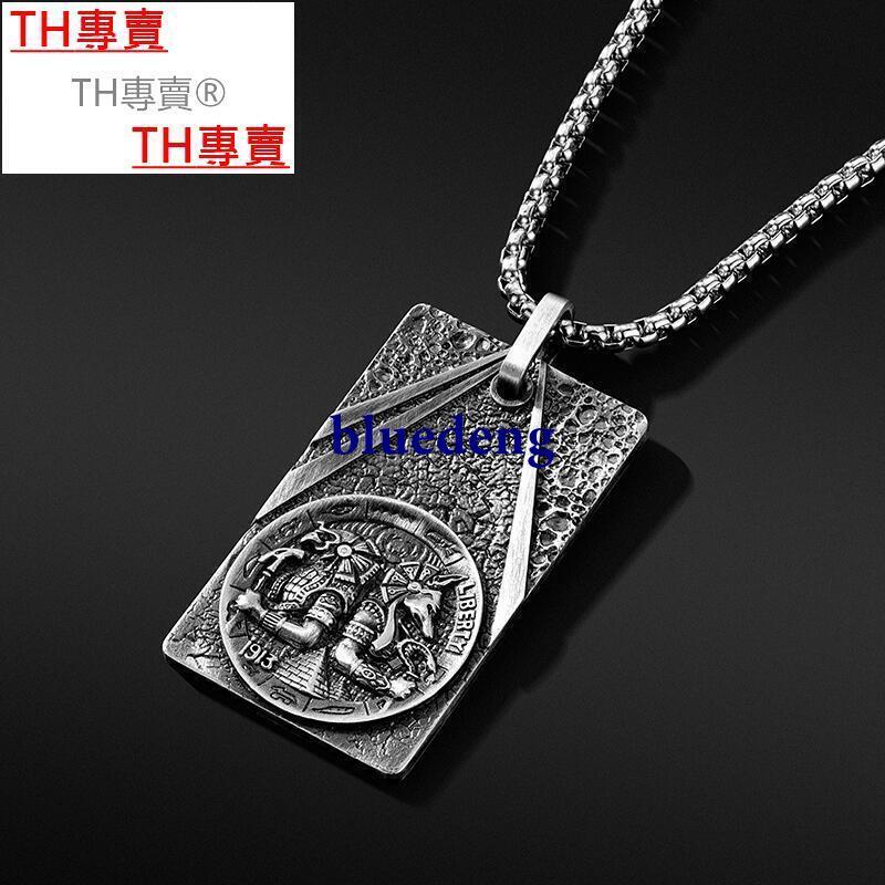 TH專賣® 925銀項鏈潮搭配衣服配飾ins冷淡風男士項鏈吊墜個性百搭嘻哈軍牌