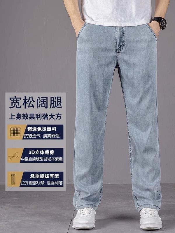 【現貨直髮】牛仔裤男高端天絲牛仔褲男士寬松直筒夏季薄款闊腿男褲冰絲超薄休閑長褲子