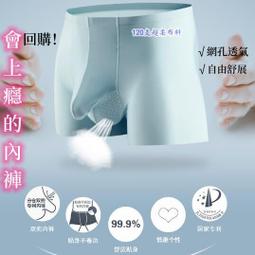 台灣現貨【2023新款槍彈分離】120支柔細男生冰絲內褲 槍彈分離無痕內褲 冰絲四角褲 涼感平口褲 槍彈分離男生內褲 冰