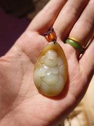 和闐玉新疆且末金山料糖白佛公掛墜35382