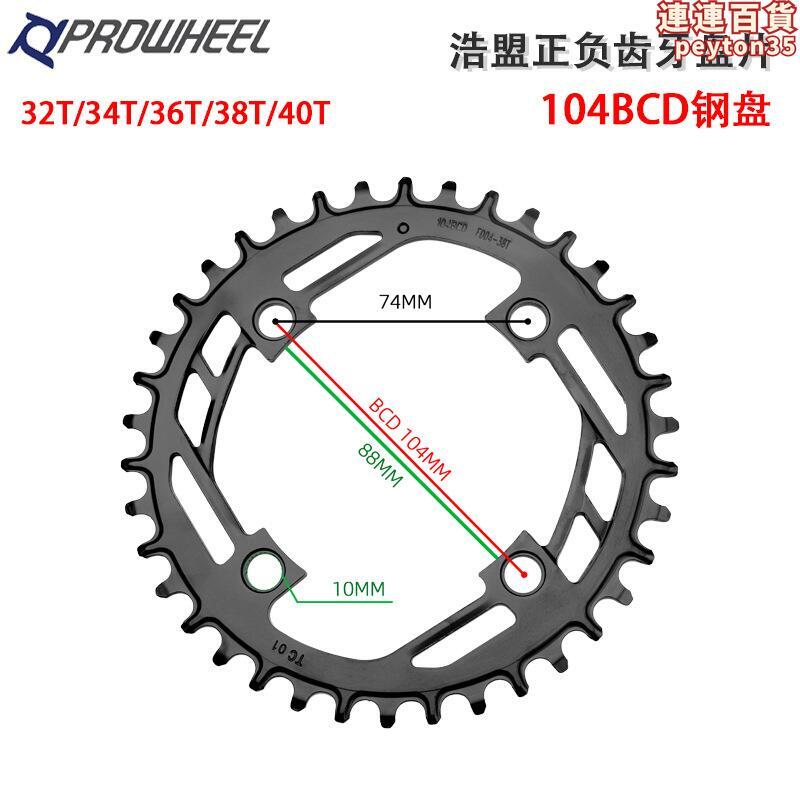 prowheel山地車牙盤104BCD正負齒碟片32T34T36T38T單速圓盤鋼碟片