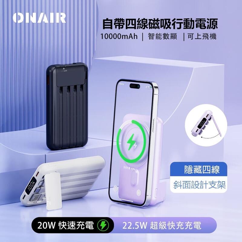 ONAIR 行動電源 自帶線 10000mAh 磁吸 行動充 無線充電 無線充 支架 多功能 X1