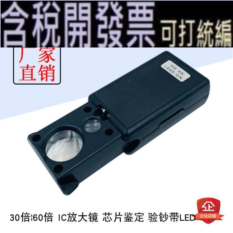 60倍放大鏡珠寶古玩鑑定IC芯片驗鈔放大鏡高清便攜手持式帶LED燈