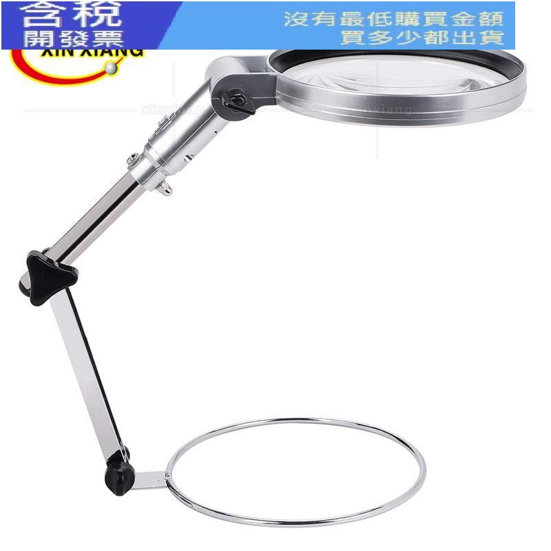 【含稅】摺疊臺式帶燈照明支架式桌面LED放大鏡 檢測維修雕刻印刷閱讀看書