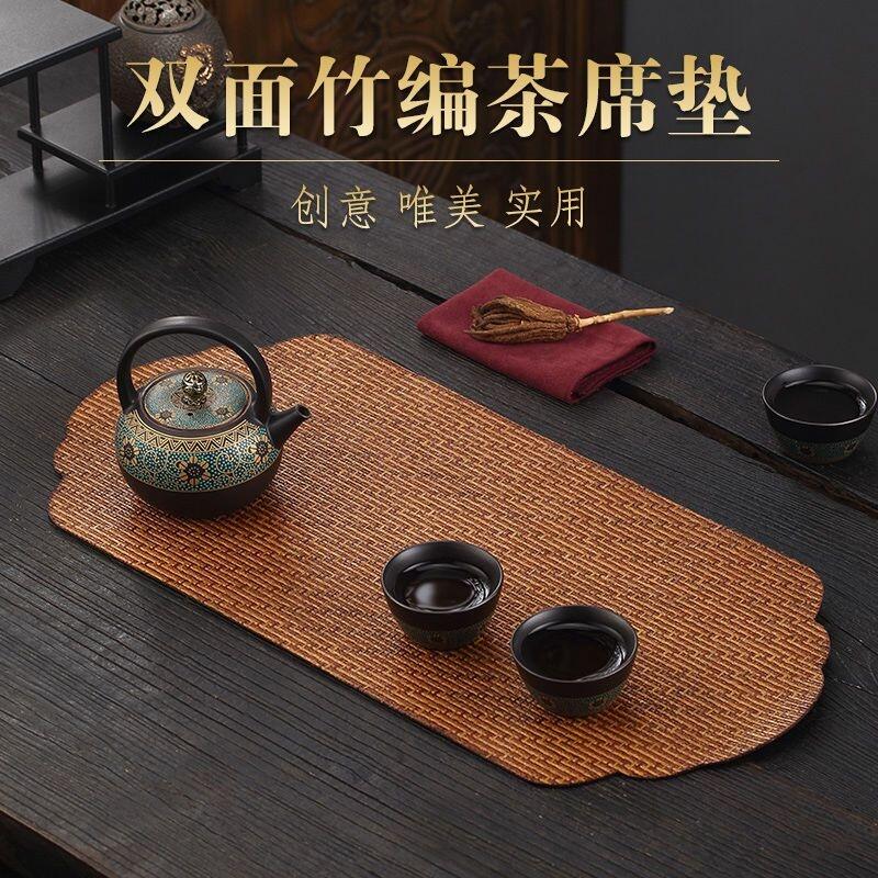台灣現貨日式大漆竹編茶席 雙面竹編茶席 隔熱墊 竹蓆桌旗 幹泡席茶具配件 茶旗防水 禪意茶墊 茶道配件