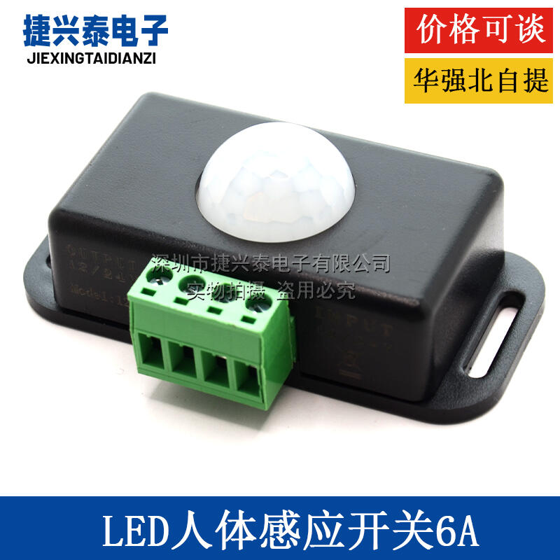 LED 人體感應開關 6A 黑色 延遲時間可調 PIR 5050燈條模組12/24V DZF914