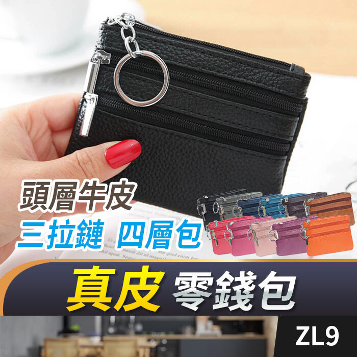 板橋現貨【真皮 四層拉鏈零錢包】牛皮 零錢包. 硬幣包.錢包.鑰匙包.皮夾.皮包.信用卡包.證件包.名片夾ZL9