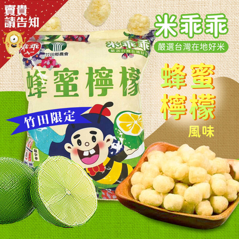 【口感酥脆】竹田鄉農會 蜂蜜檸檬乖乖52g 不含防腐劑 高溫烘焙製成 米乖乖 酸甜唰嘴 非油炸物