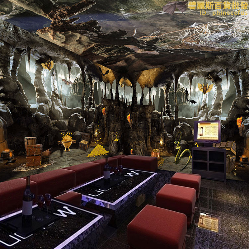 3d立體牆布科幻山洞密室逃脫主題壁紙5D網咖酒吧桌遊飯廳影院壁紙