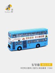 台灣現貨TINY微影1:110利蘭勝利二型雙層巴士 清潔香港 汽車合金仿真模型