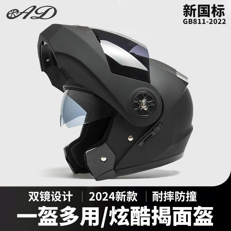 48h出貨丶2024新款3C認證摩託車頭盔男四季通用機車安全帽秋冬季保暖揭面盔