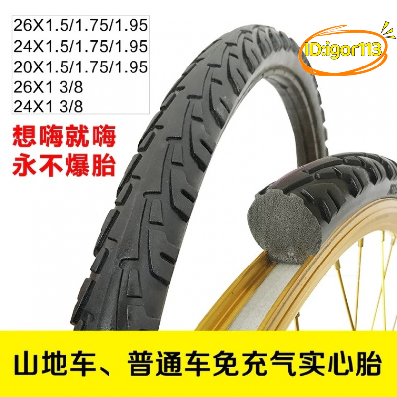 【優選】26寸自行車實心胎26x1.95免充氣輪胎24/26x13/8自行車實心胎帶廠