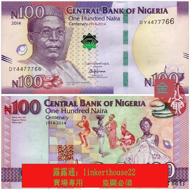 【正品】【特價全新】尼日利亞100奈拉 2014年建國百年紀念鈔非洲紙幣保真