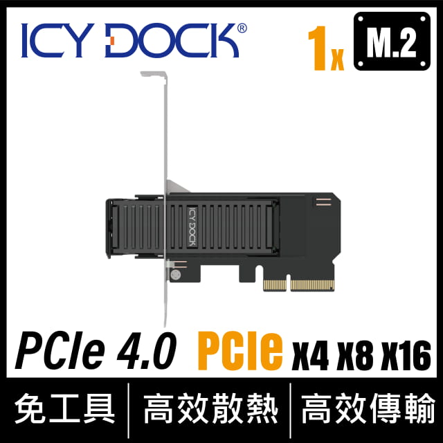 【PChome 24h購物】ICY DOCK M.2 NVMe SSD 轉 PCIe 4.0 x4 硬碟抽取盒,適用於 PCIe 擴充插槽