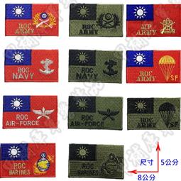 《乙補庫》中華民國軍種國旗彩色臂章/滿繡5*8公分/左手(大)/陸海空軍陸戰隊傘兵憲兵/國旗徽章臂章/貼布貼/