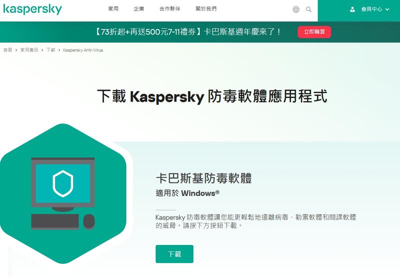 台灣繁體 WINDOWS限定使用 卡巴斯基 防毒軟體 (基礎防護) (1台電腦/3年授權) 台灣繁體系統限定 紙卡包裝