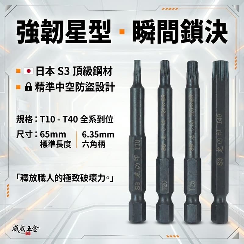 【威威五金】龍之印|T10-T40 長 65mm|起子頭 星型中空起子頭 星型中空起子頭 單頭星形中空 S3材質|台灣製