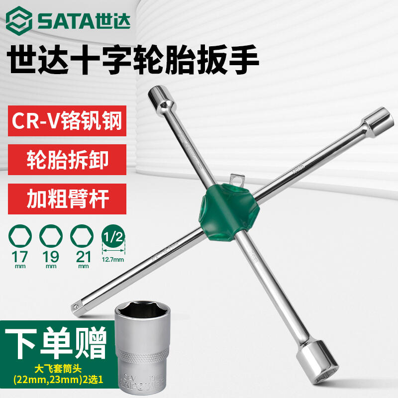(優選)世達十字輪胎扳手汽車專用多功能拆卸備胎換胎省力十字架套筒工具