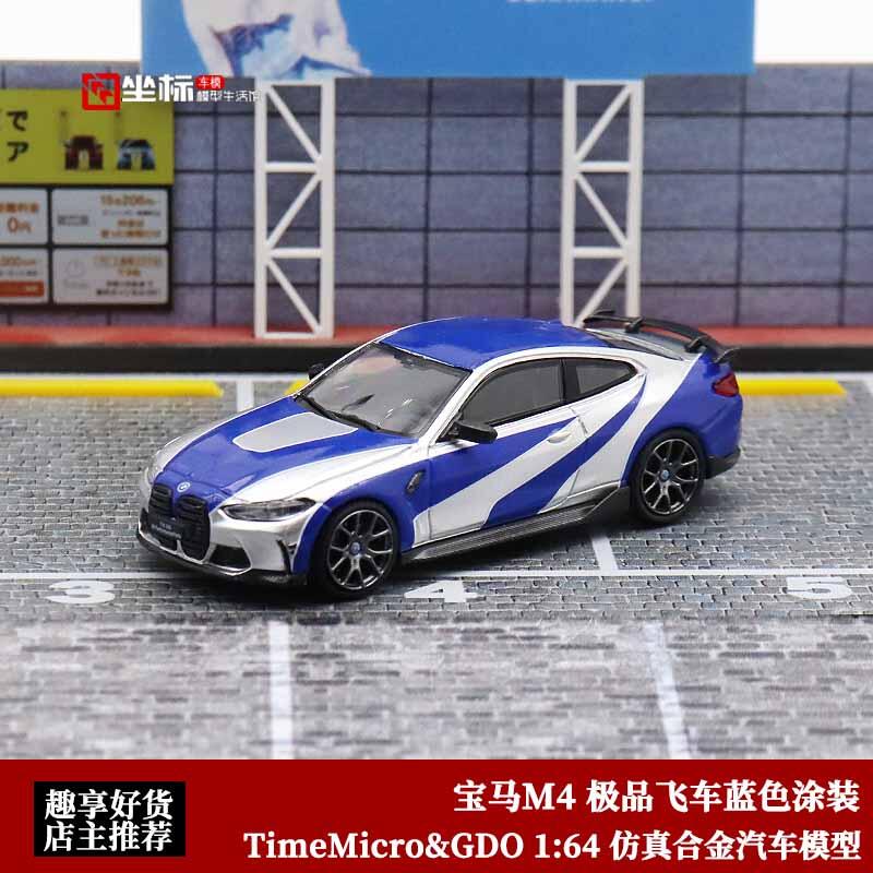 免運~TimeMicro GDO 1:64 TM寶馬M4 極品飛車 銀藍色 仿真合金汽車模型