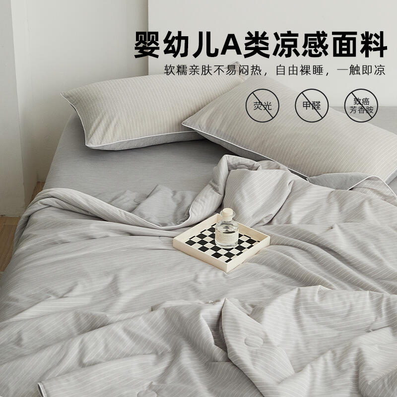 精品 無印風條紋冰冰兔涼感抗菌夏被裸睡冰絲空調被夏涼被單雙人可機洗