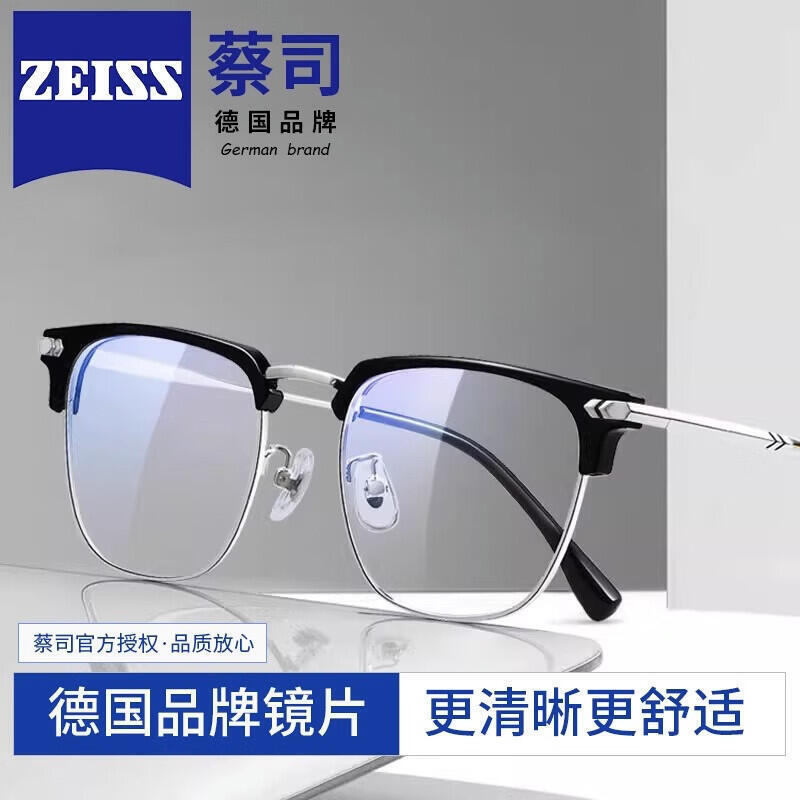 蔡司近視眼鏡超輕純鈦眉線半框鏡架男可配度數鏡片防藍光大框