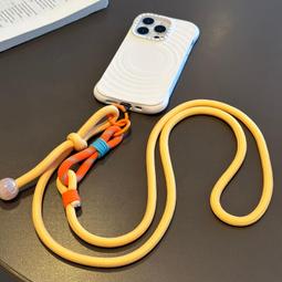 手機飾品 金屬夾片拼接撞色手機殼掛繩斜挎可調節戶外掛脖手機鏈結實防丟女