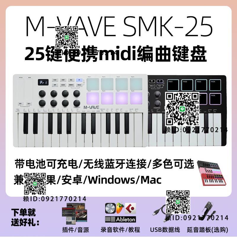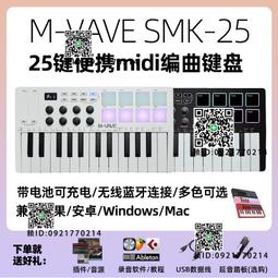 新款M-VAVE SMK25編曲midi鍵盤打擊墊便攜25鍵迷妳無線藍控制器