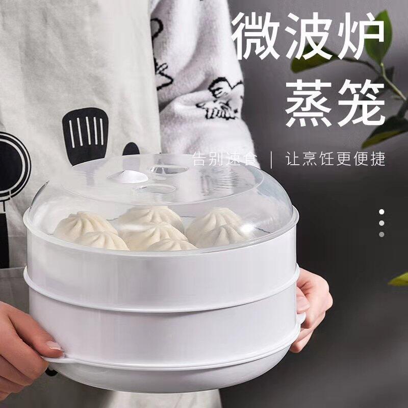 【專業發票】微波爐蒸籠飯菜饅頭加熱帶蓋蒸盒塑料蒸屜器皿家用微波爐蒸盒