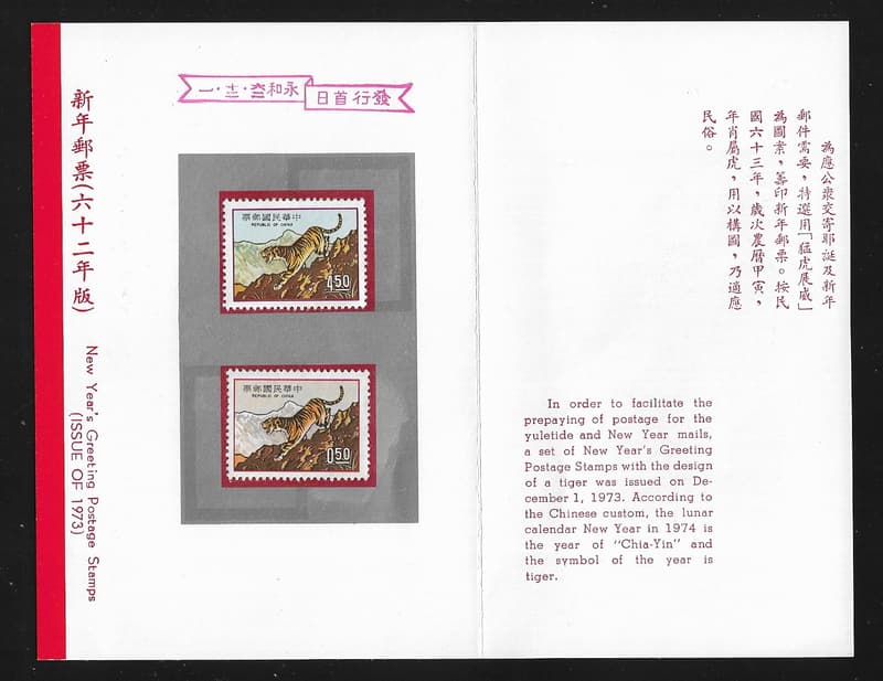 【無限】(273)(特98)新年郵票(62年版)虎2全(黏貼於卡上)(專98)