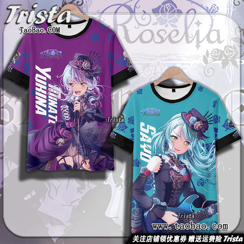 熱銷 Roselia周邊衣服BanG Dream動漫湊友希那 冰川紗夜痛衣短袖T恤男