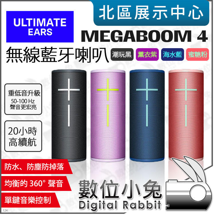 數位小兔【 Ultimate Ears MEGABOOM 4 UE 無線藍牙喇叭 黑 藍 粉 紫 】 公司貨 無線喇叭